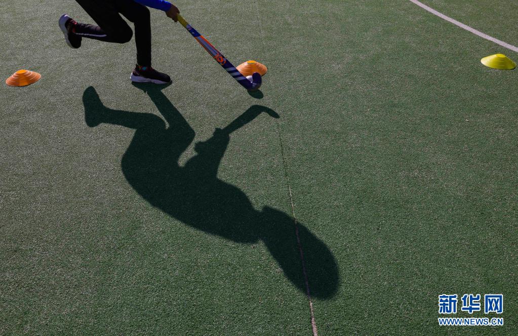 塔城市第二小學曲棍球隊的小隊員進行帶球練習(6月11日攝)。