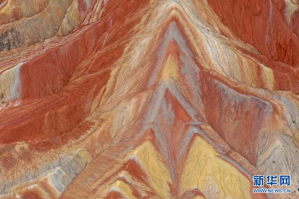 夏日時節,位于甘肅省張掖市的張掖世界地質公園內,絢麗的天然色調依山勢起伏,層理交錯分布,行走其中仿佛置身畫境。