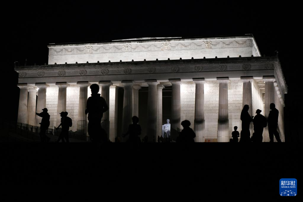 10月8日,在美国华盛顿,人们聚集在林肯纪念堂前。