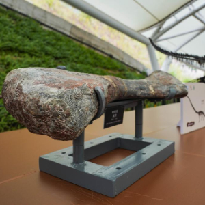 10月26日在重庆云阳世界地质公园的恐龙化石遗址馆拍摄的恐龙化石。