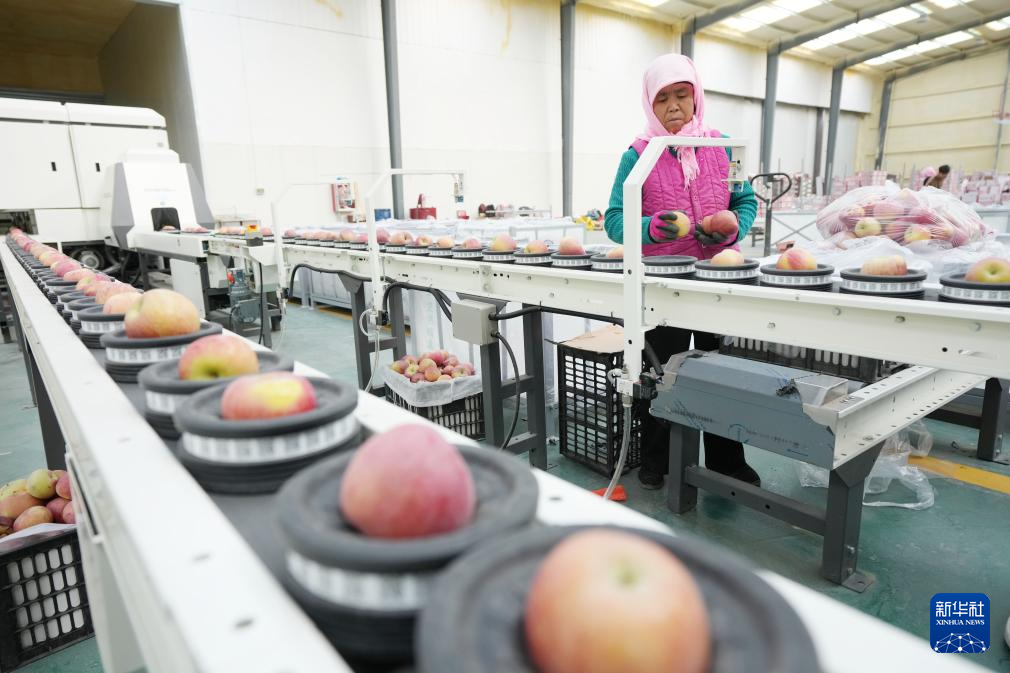 工作人员在中卫市沙坡头区一家加工企业分拣“旱苹果”(10月25日摄)。
