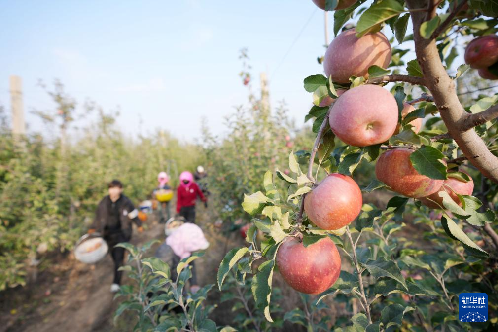 农户在中卫市沙坡头区“旱苹果”种植基地采摘苹果(10月25日摄)。