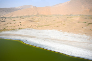 秋日,位于内蒙古阿拉善盟阿拉善右旗的世界遗产巴丹吉林沙漠—沙山湖泊群褪去炙热,绵延的沙丘披上柔和金光,与点缀其间的湖泊相映成趣,勾勒出一幅静谧而壮丽的自然画卷。