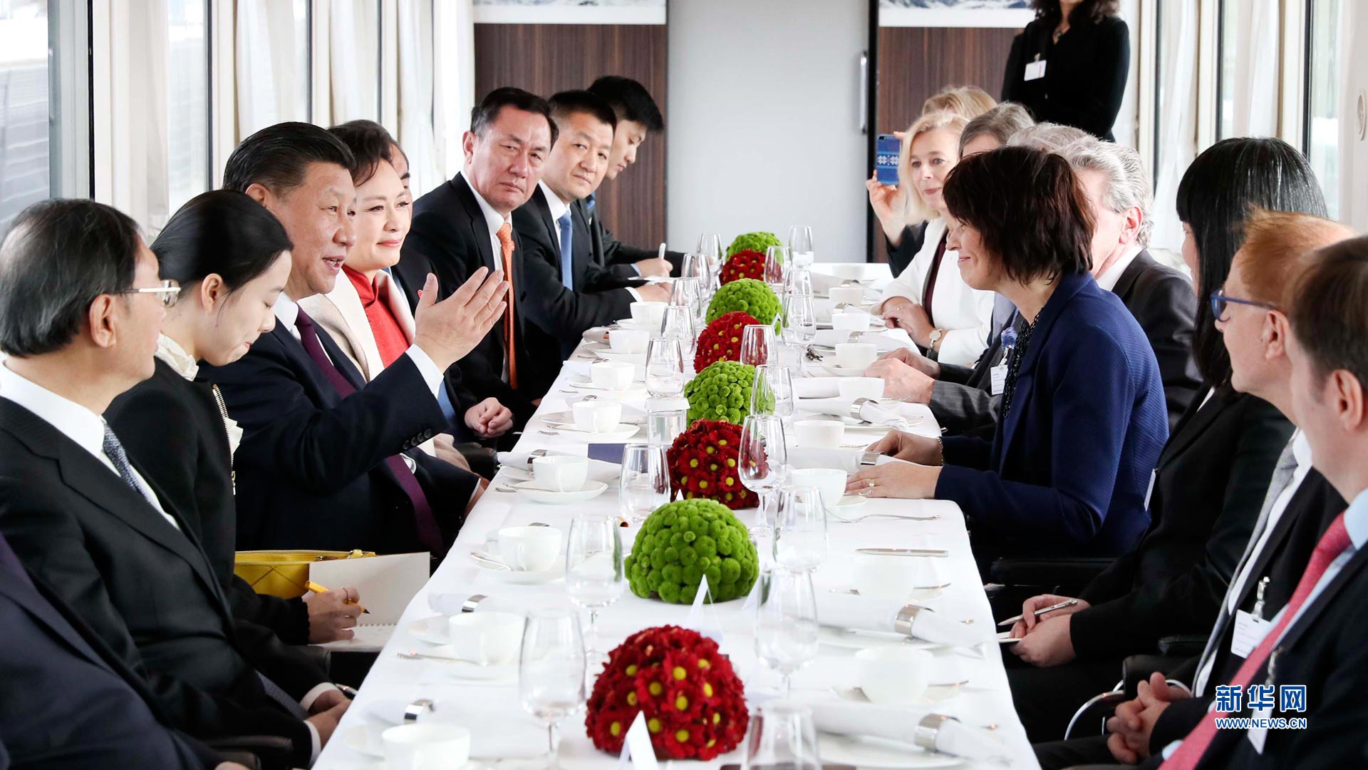 1月15日,國家主席習近平在瑞士聯邦主席洛伊特哈德陪同下,乘坐瑞士政府專列自蘇黎世前往瑞士首都伯爾尼。在專列行進過程中,習近平和夫人彭麗媛受洛伊特哈德主席夫婦邀請,在輕松愉快的氛圍中品茶暢談。這是習近平和夫人彭麗媛在伯爾尼克爾薩茨火車站觀看瑞士童聲合唱團表演。 新華社記者蘭紅光攝2017-01-16