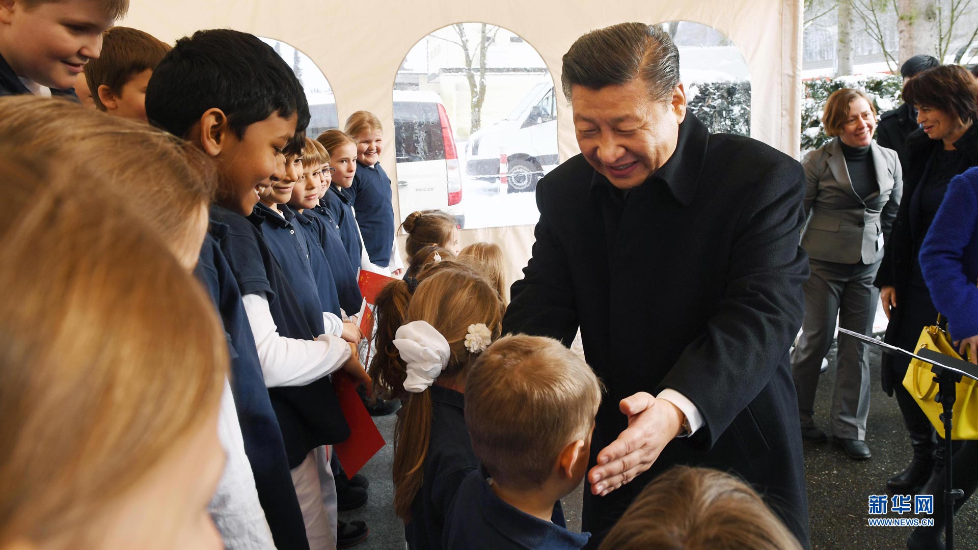 1月15日,國家主席習近平在瑞士聯邦主席洛伊特哈德陪同下,乘坐瑞士政府專列自蘇黎世前往瑞士首都伯爾尼。在專列行進過程中,習近平和夫人彭麗媛受洛伊特哈德主席夫婦邀請,在輕松愉快的氛圍中品茶暢談。這是習近平在伯爾尼克爾薩茨火車站觀看瑞士童聲合唱團表演后,與合唱團的小演員交流。 新華社記者饒愛民攝2017-01-16