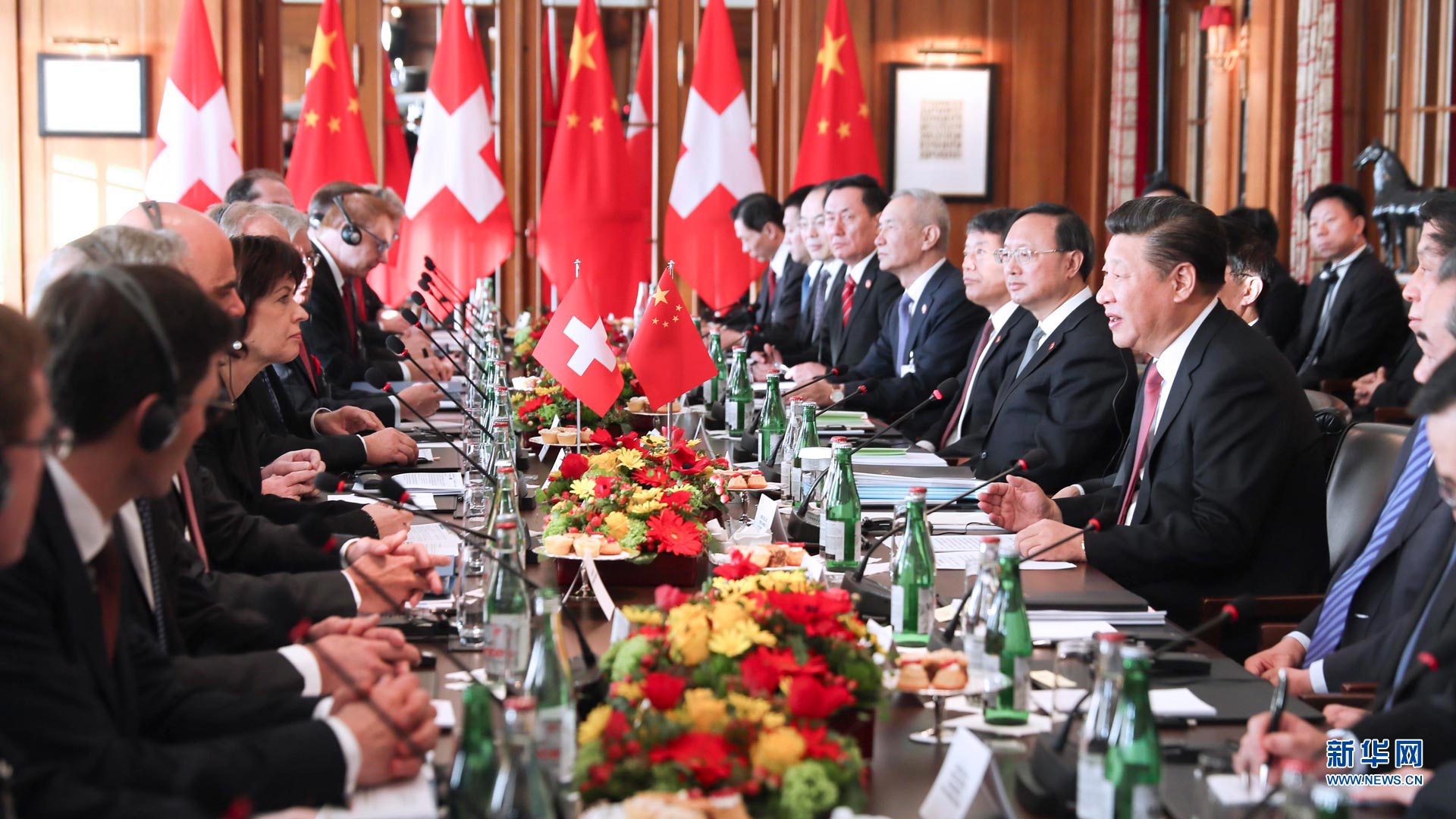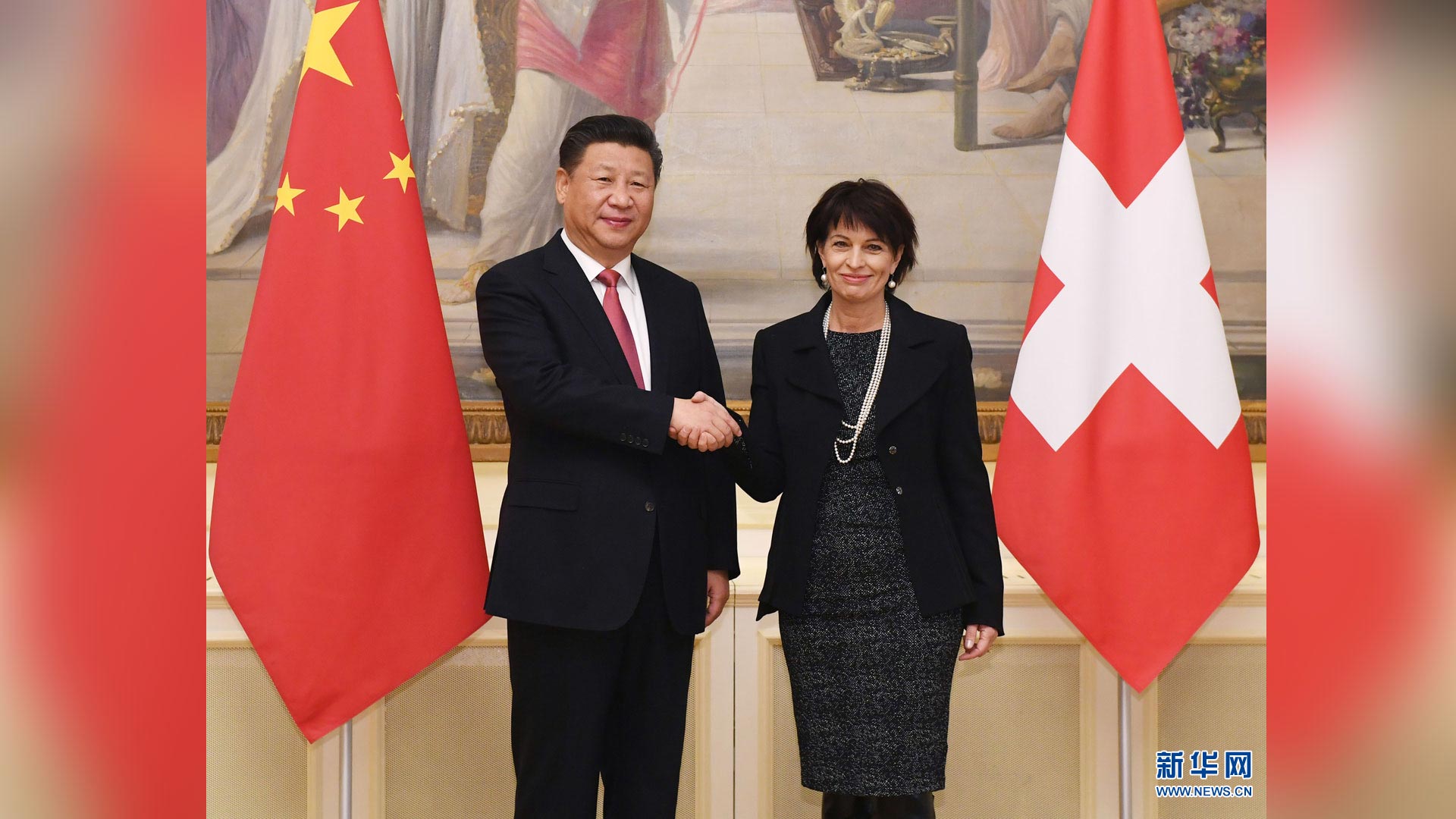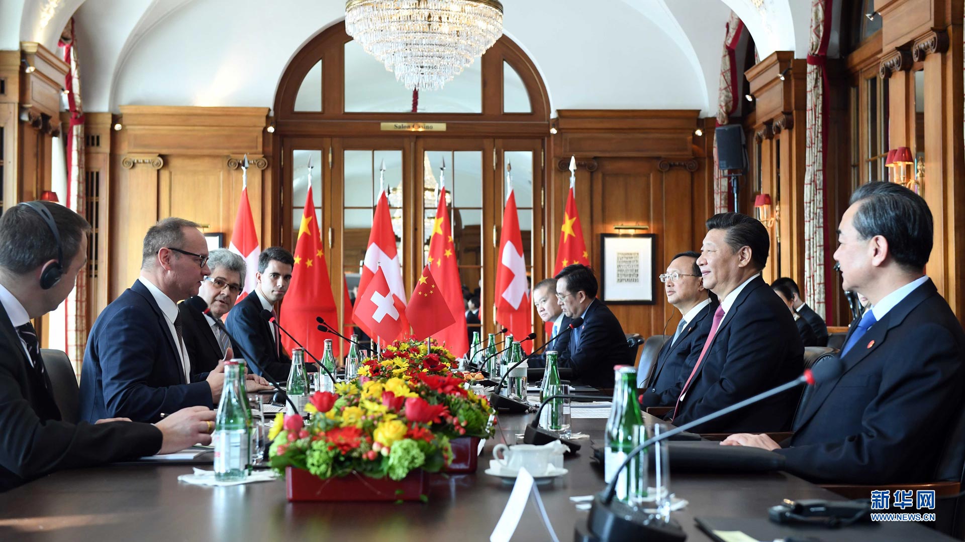 1月16日,國家主席習近平在伯爾尼會見瑞士聯邦國民院議長施塔爾和聯邦院議長比紹夫貝爾格。 新華社記者 謝環馳 攝2017-01-17