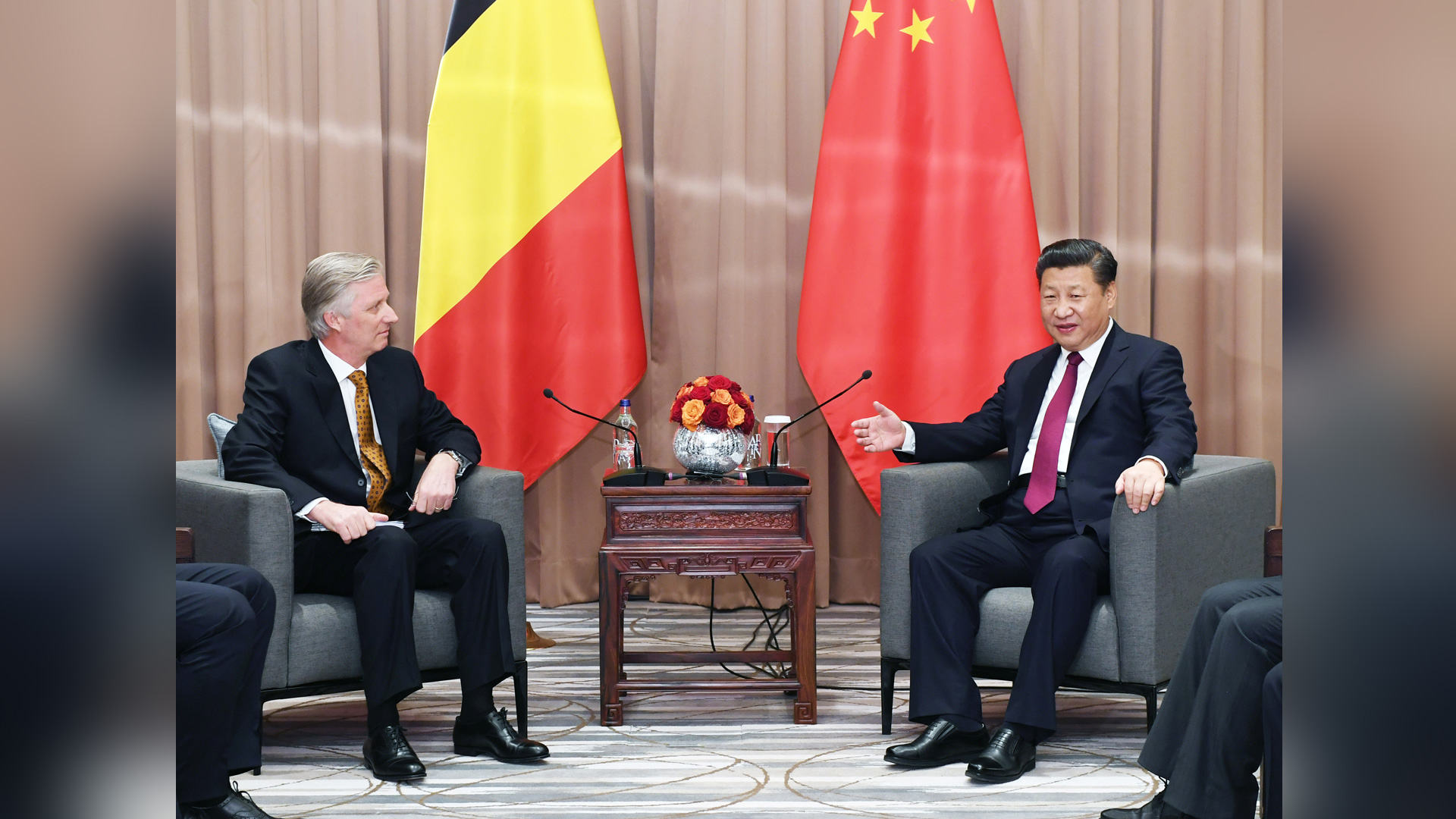 1月17日,國家主席習近平在瑞士達沃斯會見比利時國王菲利普。新華社記者 丁林 攝2017-01-18