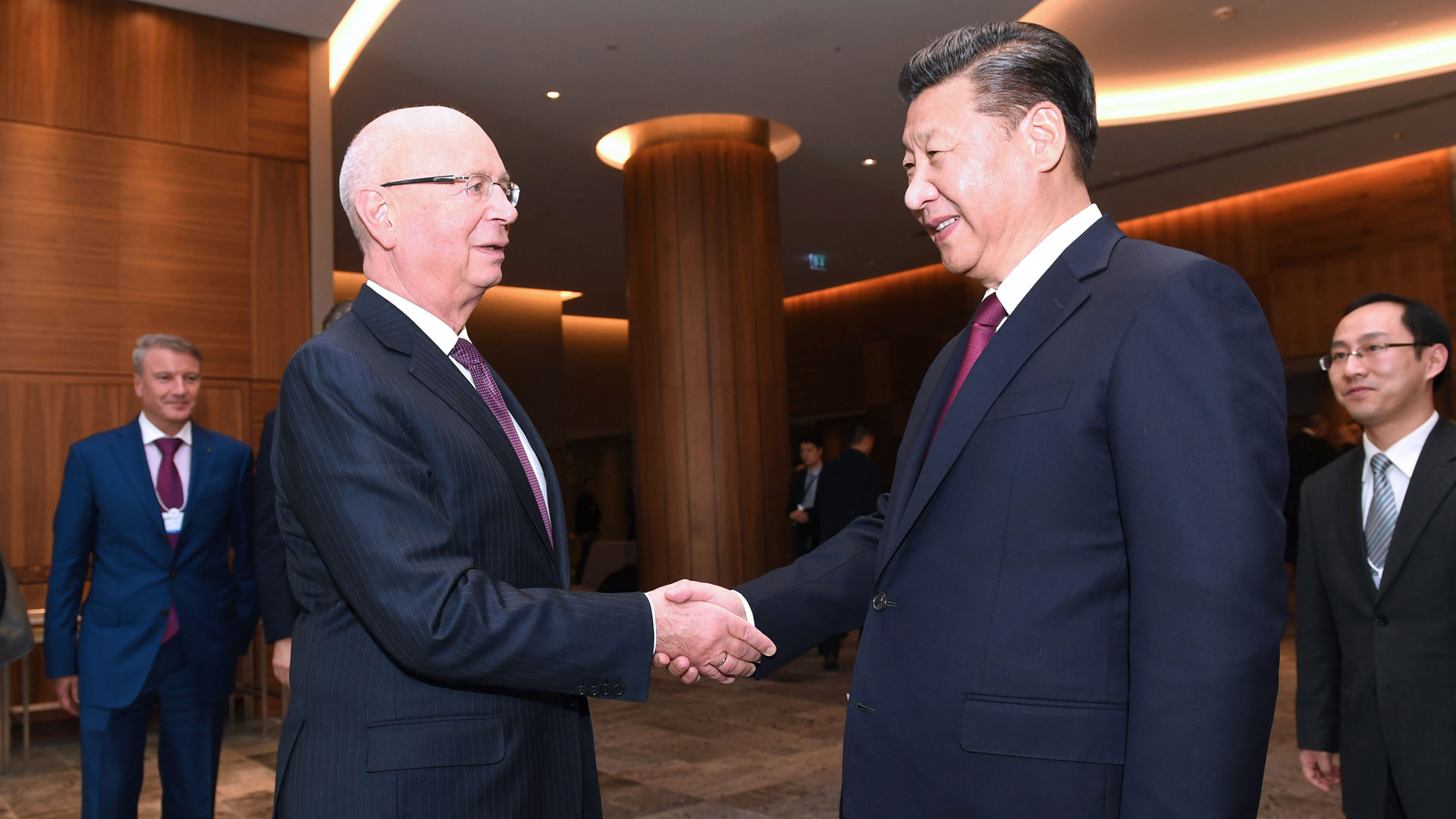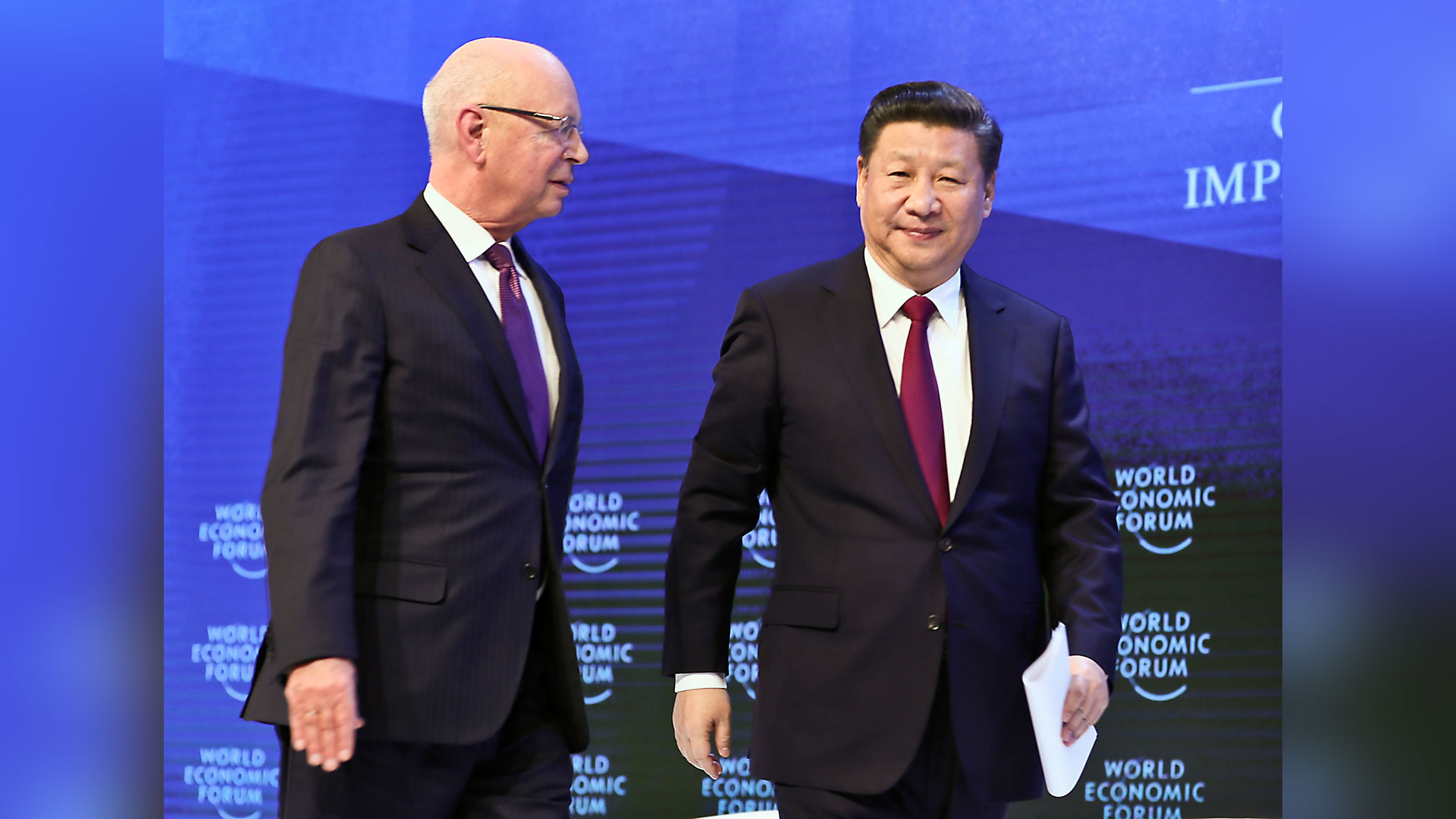 1月17日,國家主席習近平在瑞士達沃斯國際會議中心出席世界經濟論壇2017年年會開幕式,并發表題為《共擔時代責任共促全球發展》的主旨演講。這是習近平同世界經濟論壇創始人兼執行主席施瓦布在一起。 新華社記者 蘭紅光 攝2017-01-18