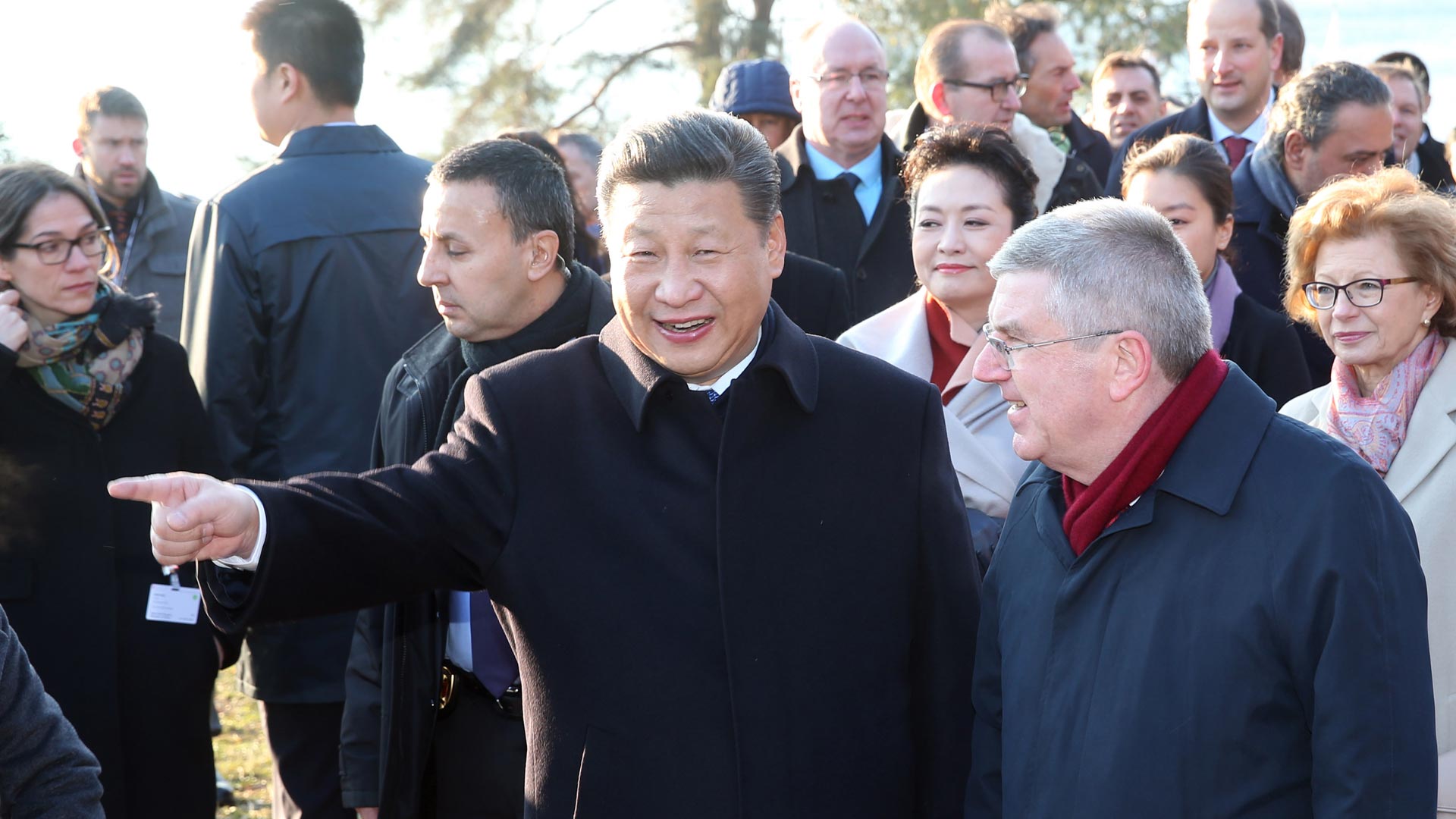 1月18日,國家主席習近平在瑞士洛桑國際奧林匹克博物館會見國際奧林匹克委員會主席巴赫。這是會見后,習近平和夫人彭麗媛在巴赫主席夫婦陪同下,參觀國際奧林匹克博物館。新華社記者 姚大偉 攝2017-01-19