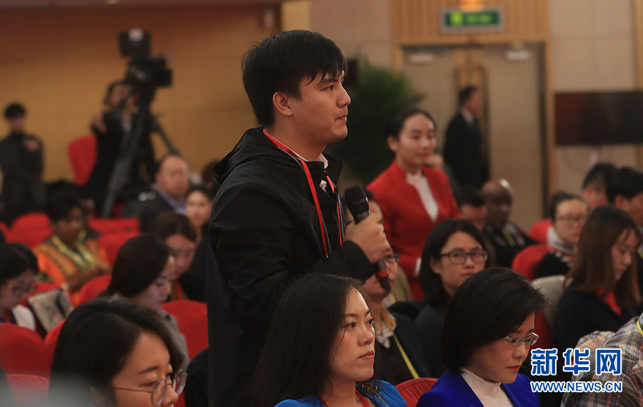 ??? 10月19日,十九大新聞中心舉辦集體采訪,邀請政法戰線代表談全面推進依法治國。圖為中國消費者報社記者提問。新華網 郝廣鵬攝