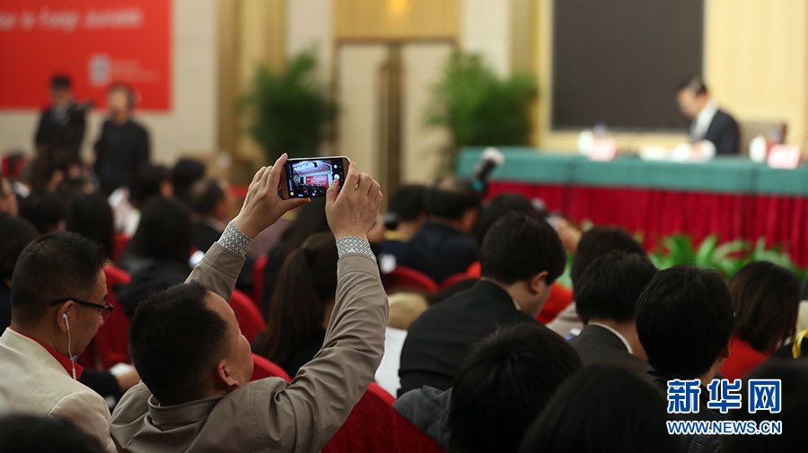 ??? 10月21日,十九大新聞中心舉辦記者招待會,邀請國家發展改革委黨組書記、主任何立峰,副主任張勇,副主任寧吉喆介紹以新發展理念為引領,推進中國經濟平穩健康可持續發展有關情況,并回答記者提問。圖為現場記者。新華網 郝廣鵬攝