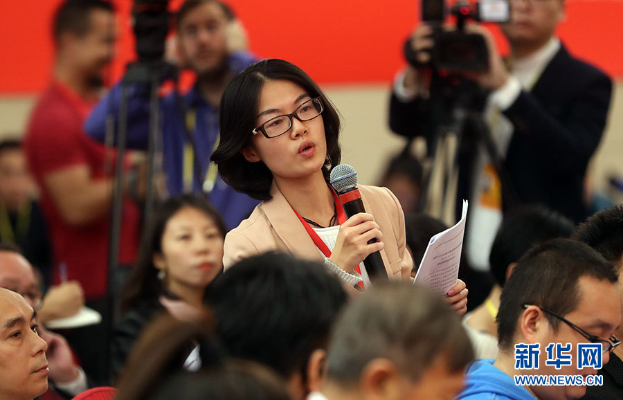 10月21日,十九大新聞中心舉辦記者招待會(huì),邀請國家發(fā)展改革委黨組書記、主任何立峰,副主任張勇,副主任寧吉喆介紹以新發(fā)展理念為引領(lǐng),推進(jìn)中國經(jīng)濟(jì)平穩(wěn)健康可持續(xù)發(fā)展有關(guān)情況,并回答記者提問。圖為中國新聞社記者提問。新華網(wǎng) 郝廣鵬攝