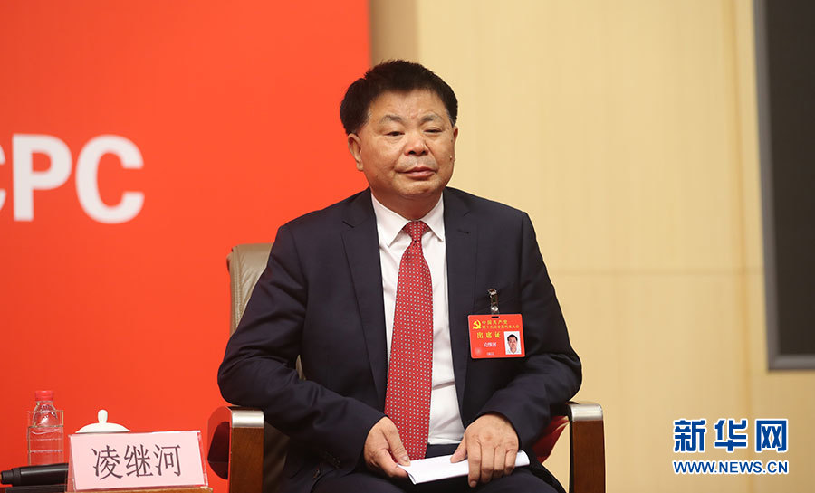 10月21日,十九大新聞中心舉辦集體采訪活動,主題為“農業科技創新”。圖為江西省安義縣種糧大戶、綠能農民專業合作社黨支部書記凌繼河。新華網 郝廣鵬攝