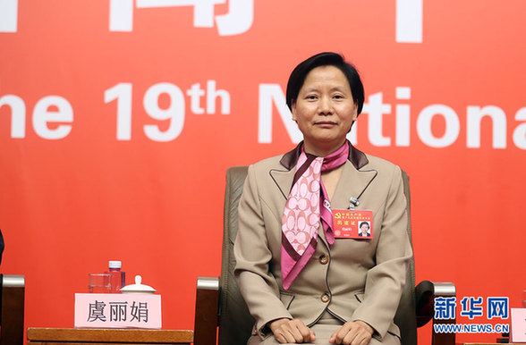 10月22日,十九大新聞中心在梅地亞中心二層新聞發布廳舉辦集體采訪活動,邀請教育領域代表談“教育綜合改革”。圖為上海市教育衛生工作黨委書記虞麗娟。新華網 郝廣鵬攝
