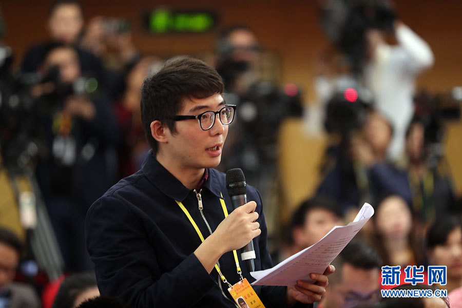 10月22日,十九大新聞中心在梅地亞中心二層新聞發布廳舉辦集體采訪活動,主題為“中國特色強軍之路邁出堅定步伐”。圖為中評社記者提問。新華網 郝廣鵬攝