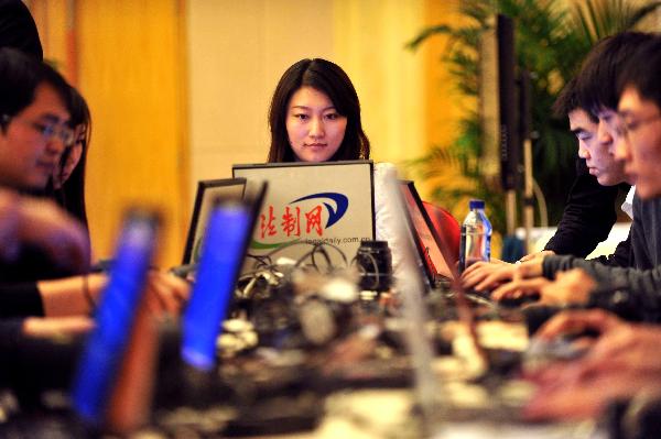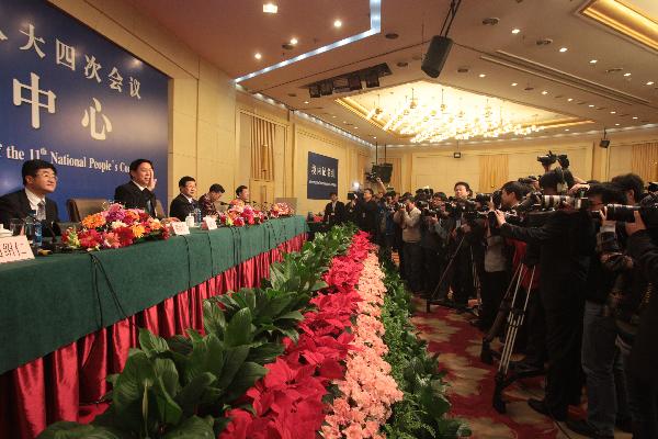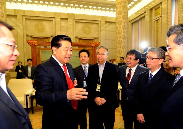 賈慶林看望參加兩會報道的中央新聞單位負責人