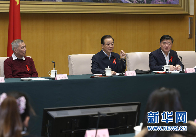 ????11月30日,國務院總理溫家寶在北京中南海與艾滋病感染者、艾滋病致孤兒童、上訪人員、醫務人員、科研人員、志愿者和有關國際組織代表座談。(來源:新華社記者 龐興雷 攝)