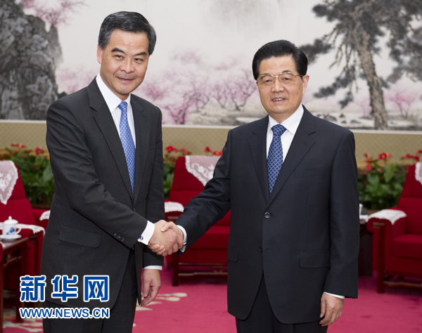 新華網(wǎng)北京12月21日電(記者李寒芳)國家主席胡錦濤21日下午在中南海會(huì)見了來京述職的香港特別行政區(qū)行政長官梁振英,聽取了他對(duì)香港當(dāng)前形勢(shì)和特區(qū)政府工作情況的匯報(bào)。