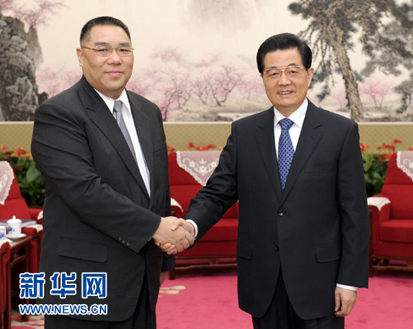 新華網(wǎng)北京12月21日電(記者李寒芳)國家主席胡錦濤21日下午在中南海會(huì)見了來京述職的澳門特別行政區(qū)行政長官崔世安,聽取了他對(duì)澳門當(dāng)前形勢和特區(qū)政府工作情況的匯報(bào)。