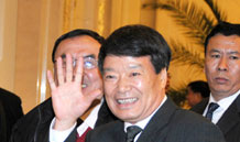 國土資源部部長徐紹史進(jìn)入會(huì)場時(shí)向本網(wǎng)記者招手