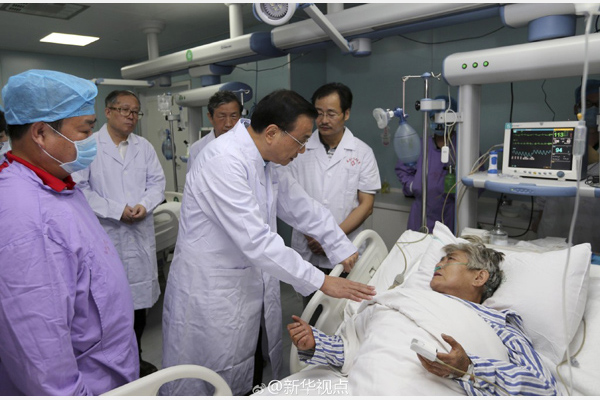 新華網北京6月2日電 ?據新華社“新華視點”微博報道,“我看著你被救上來的!”2日下午,李克強來到監利縣人民醫院,看望中午獲救的朱紅美。這位65歲的老人被潛水員救起時,總理正在沉船附近水域的船上現場指揮。朱紅美講起自己逃生經歷,總理說:“不要多說話,先把身體養好。政府會處理好你們善后事宜的。”