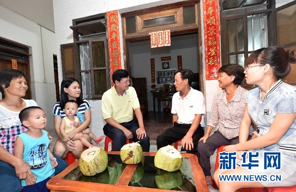 6月26日,樂東黎族自治縣縣委書記林北川(右四)夜訪九所鎮(zhèn)十所村,聽取聯(lián)系點群眾的情況。 新華社記者 趙穎全 攝