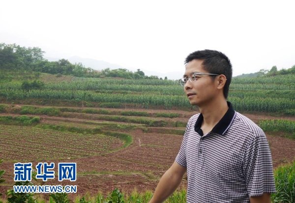 劉濤在自己種植紅心獼猴桃的山地前(6月21日攝)。新華社記者 李坤晟 攝