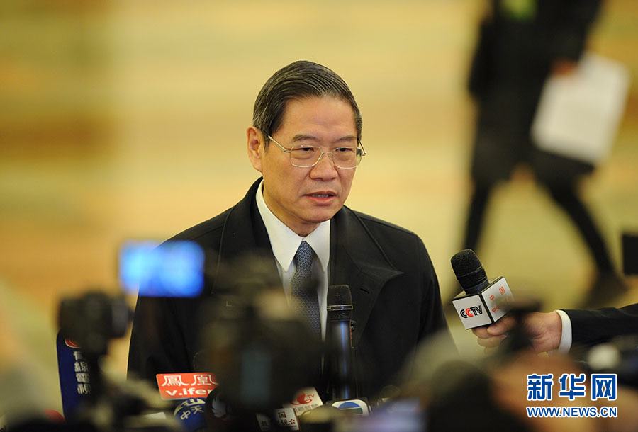 3月5日,第十二屆全國人民代表大會第三次會議在北京人民大會堂開幕。圖為國臺辦主任張志軍接受采訪。新華網/中國政府網 翟子赫攝