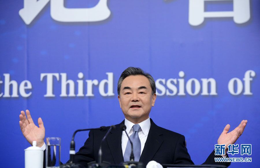 ??? 十二屆全國人大三次會議新聞中心于3月8日(星期日)10時在梅地亞中心多功能廳舉行記者會,邀請外交部部長王毅就中國的外交政策和對外關系相關問題回答中外記者提問。圖為外交部部長王毅回答記者提問新華網/中國政府網 郭小天 攝