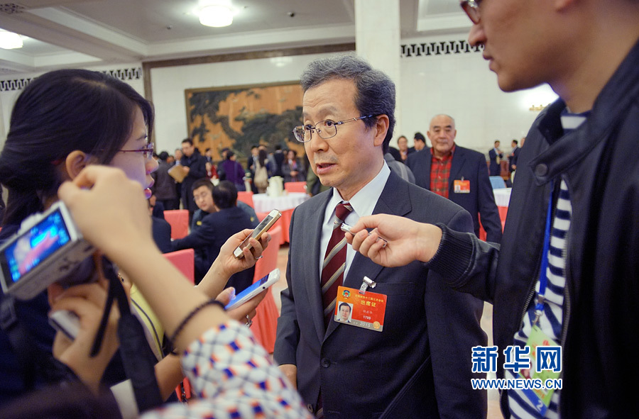 ????3月13日,全國政協十二屆三次會議在北京人民大會堂舉行閉幕會。圖為全國政協委員程永華接受記者采訪。新華網/中國政府網?翟子赫 攝
