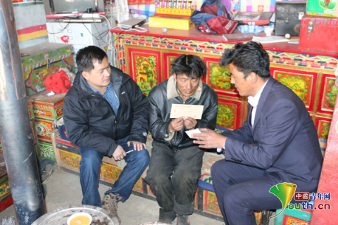 “結對認親”是西藏自治區黨委提出并高度重視的一項活動,旨在鼓勵領導干部進村入戶,和當地人結交朋友,幫助他們解決困難。作為援藏干部,廖生行也積極參與了這項活動,與當地海拔最高的鄉鎮布多鄉那江村的困難黨員扎珠和困難群眾開珠結對認親,每季度走訪、慰問并幫助他們。得知扎珠家里因農耕需求想要購買一臺拖拉機,廖生行主動幫忙詢問鎮里的資金補貼政策,幫助其盡快完成心愿。開珠家里較為貧困,除了放牧以外缺少經濟來源,廖生行也盡自己所能幫助他脫貧致富。