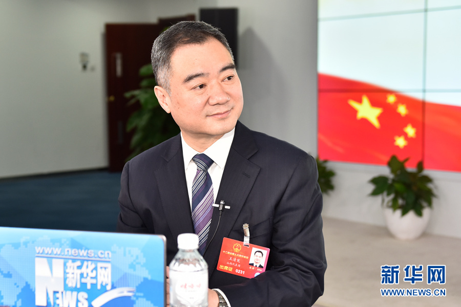 3月12日,全國人大代表,運城市市長王清憲做客新華網2016全國兩會特別訪談,與新華網網友在線交流。圖為王清憲在訪談現場。新華網 付宇鵬 攝