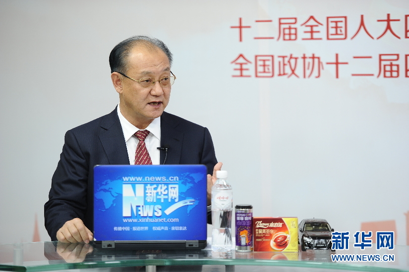 2016年3月13日,全國政協(xié)委員,中國中醫(yī)科學院廣安門醫(yī)院院長王階做客新華網兩會訪談直播間。圖為王階在訪談現(xiàn)場。新華網 盧志佳 攝