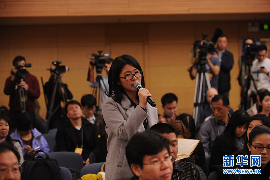 十二屆全國人大四次會議新聞中心于3月15日(星期二)10時在梅地亞中心多功能廳舉行記者會,邀請住房和城鄉建設部部長陳政高、副部長陸克華、副部長倪虹就“棚戶區改造和房地產工作”的相關問題回答中外記者的提問。圖為光明日報記者提問。新華網/中國政府網 陳杰 攝