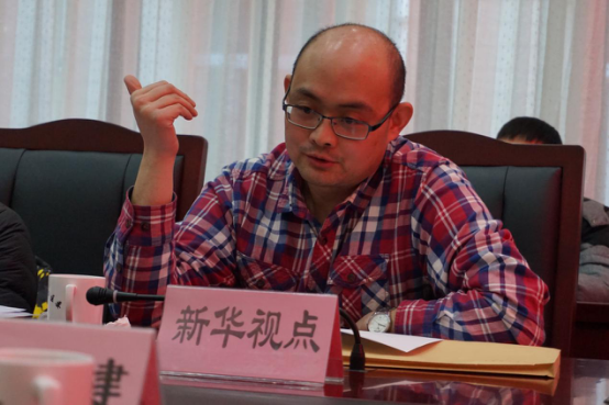 圖為“新華視點”記者劉陽在采訪座談會上提問。中國網(wǎng)信網(wǎng) 陳麗 攝
