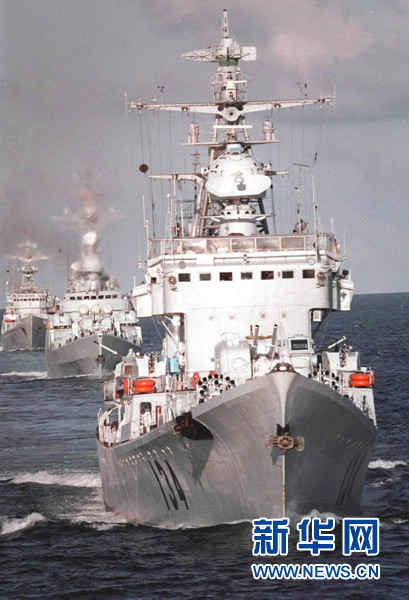 中國海軍導彈驅逐艦、護衛艦編隊巡邏在祖國的萬里海疆(資料照片)。新華社發