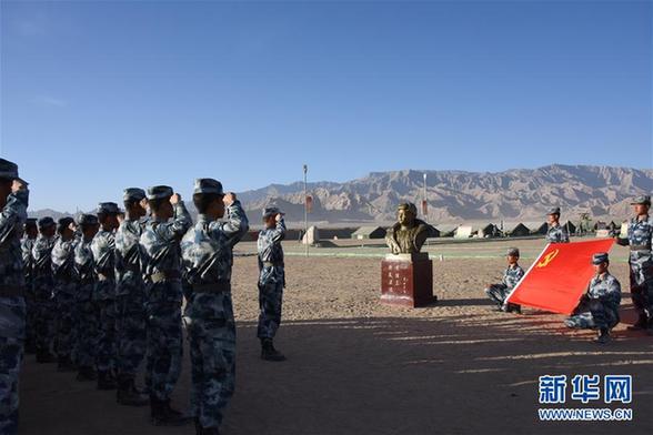 黃繼光生前所在連官兵赴高原參加實戰(zhàn)化訓練,連指導(dǎo)員余海龍帶領(lǐng)官兵莊嚴宣誓(2016年6月17日攝)。新華社發(fā)(袁文濤 攝)