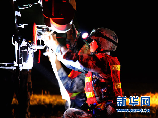 空軍地空導彈兵第二營參加“藍盾”演習,官兵在執(zhí)行夜間訓練任務時做緊急戰(zhàn)斗準備(2016年7月4日攝)。新華社發(fā)