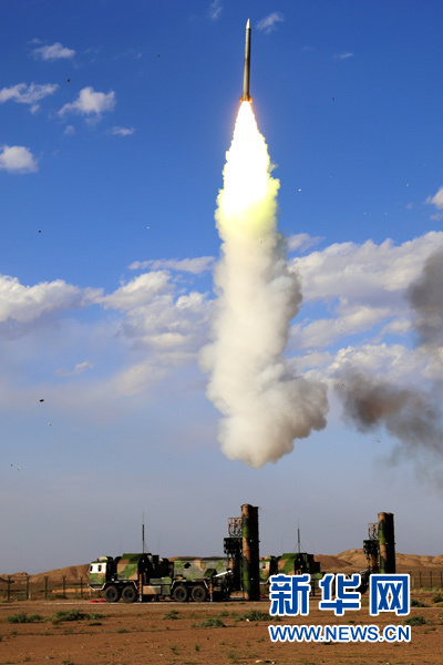 空軍地空導彈兵第二營在執(zhí)行“藍盾”演習任務中進行實彈發(fā)射(2016年7月14日攝)。新華社發(fā)