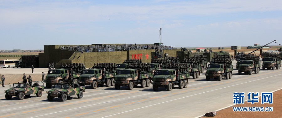 7月30日,慶祝中國人民解放軍建軍90周年閱兵在位于內蒙古的朱日和訓練基地舉行。中共中央總書記、國家主席、中央軍委主席習近平檢閱部隊并發表重要講話。這是常規導彈第1方隊。新華社記者 查春明 攝