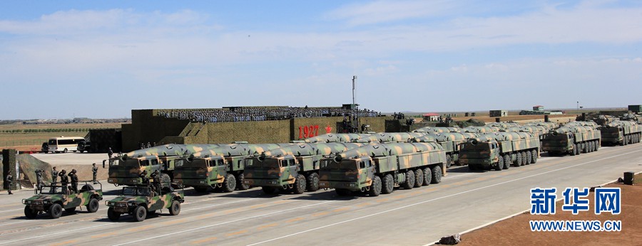 7月30日,慶祝中國人民解放軍建軍90周年閱兵在位于內蒙古的朱日和訓練基地舉行。中共中央總書記、國家主席、中央軍委主席習近平檢閱部隊并發表重要講話。這是核導彈方隊。新華社記者 查春明 攝