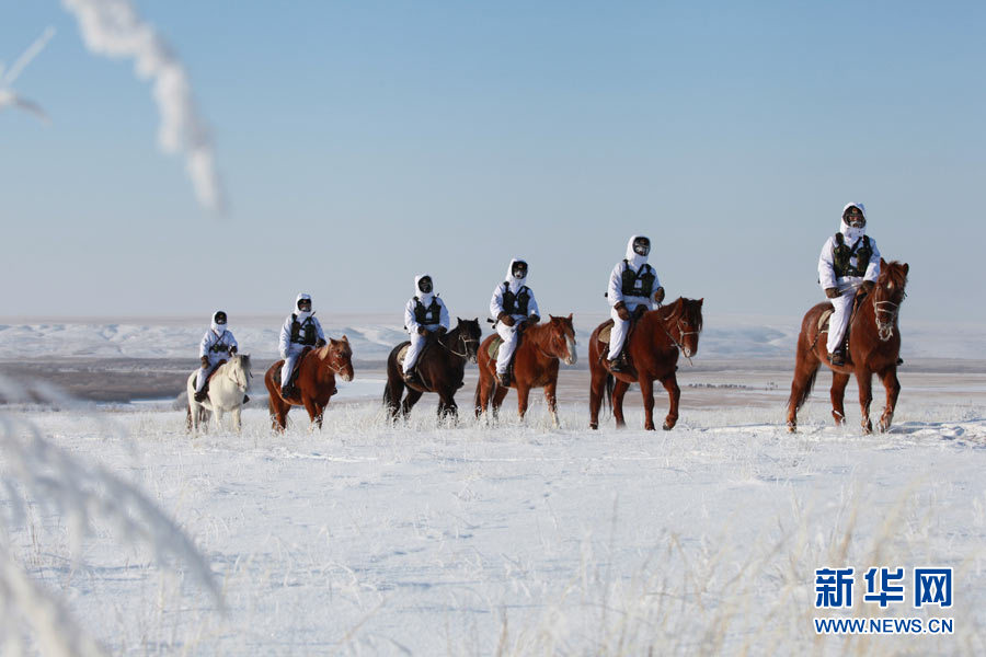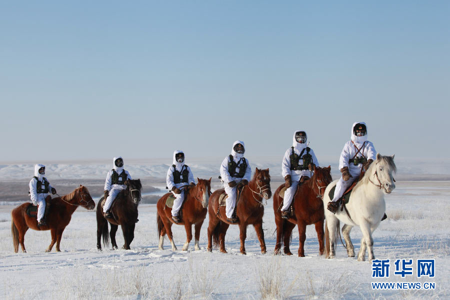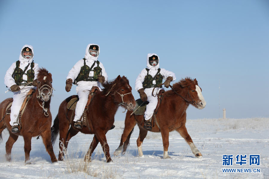 戍邊官兵冬季在邊防線上巡邏執勤。陳在林 攝
