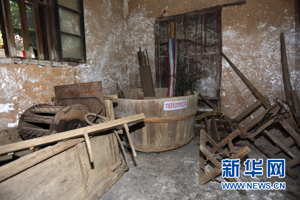 江西蓮花縣沿背村甘祖昌將軍故居中擺放著他曾經(jīng)使用過的勞動工具(3月29日攝)。新華社發(fā)