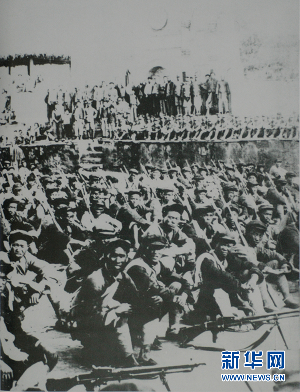 1935年9月16日,紅25軍在陜西省延川縣永平鎮(今永坪)同陜甘紅軍會師。圖為會師時的情景(資料照片)。 新華社發