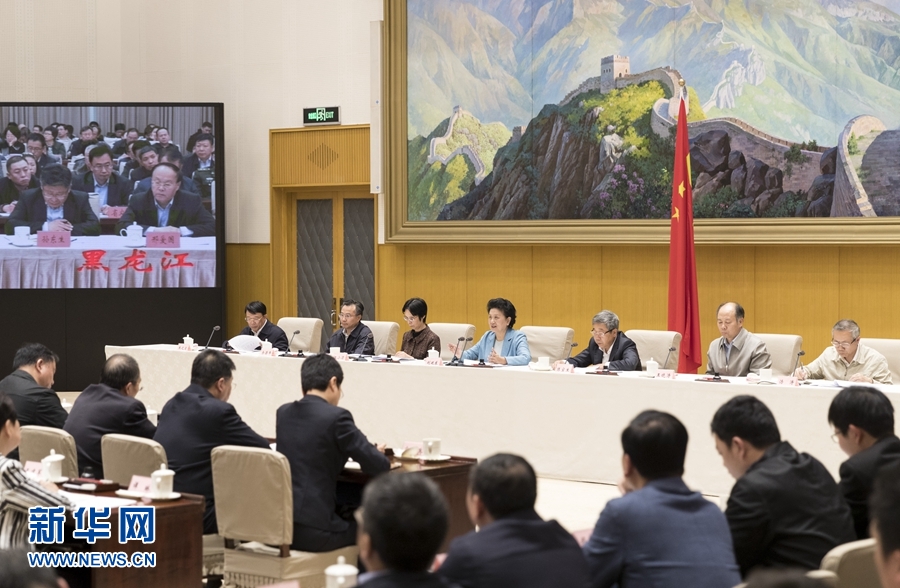 10月9日,中共中央政治局委員、國務院副總理劉延東在北京出席貫徹落實《關于深化教育體制機制改革的意見》電視電話會議。新華社記者 丁海濤 攝