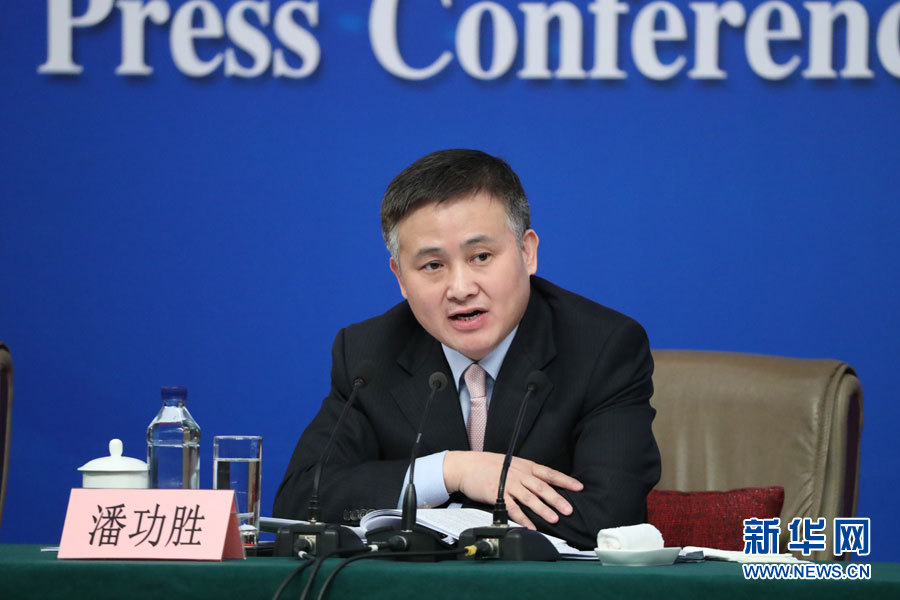 3月10日,十二屆全國(guó)人大五次會(huì)議新聞中心舉行記者會(huì),邀請(qǐng)中國(guó)人民銀行行長(zhǎng)周小川、副行長(zhǎng)易綱、副行長(zhǎng)兼國(guó)家外匯管理局局長(zhǎng)潘功勝、副行長(zhǎng)范一飛就“金融改革與發(fā)展”的相關(guān)問(wèn)題回答中外記者的提問(wèn)。圖為潘功勝回答記者提問(wèn)。新華網(wǎng)/中國(guó)政府網(wǎng) 孫韜 攝