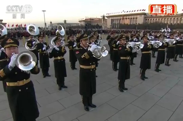 軍樂團奏響《歌唱祖國》的動人旋律 天安門廣場新年升國旗儀式圓滿結束