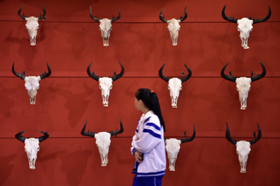 ▲2017年12月28日,觀眾在廣州藝術博物院觀看“牦牛走進羊城——西藏牦牛文化展”展品。新華社記者梁旭攝