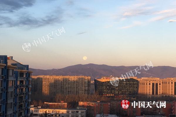 昨天,在強勁北風的掃蕩下,京城“容顏煥發”,藍天明凈,流云迤邐,早晨上班時段,京城西邊月亮未落,東邊的太陽便已冉冉升起,出現了日月同輝,美不勝收的景色。但氣溫較為低迷,監測顯示,南郊觀象臺最高氣溫出現在下午15時26分,僅有0.5℃。