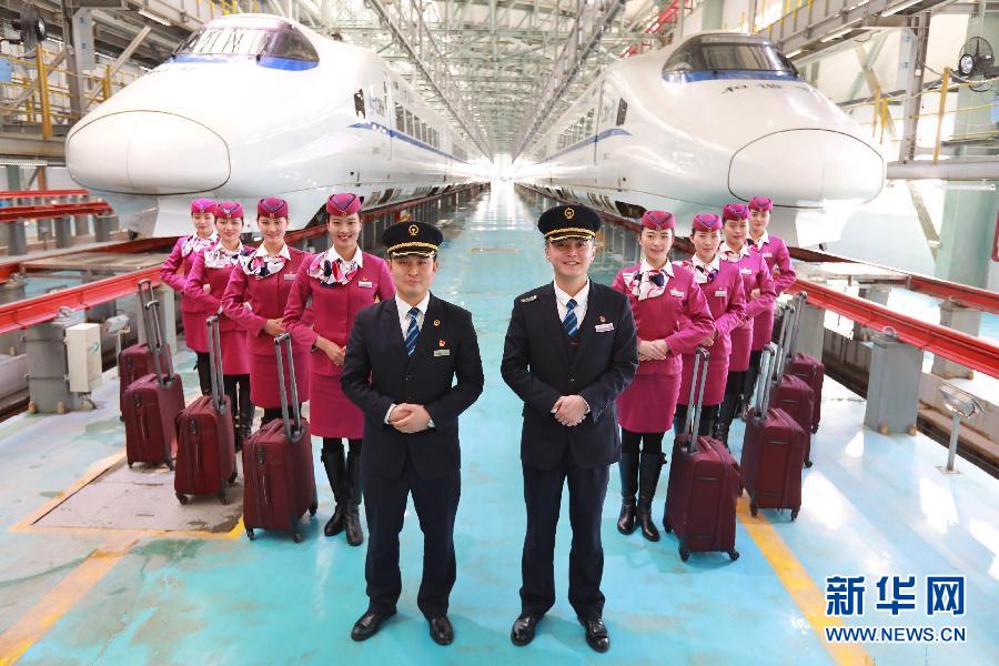 1月16日,擔任渝貴鐵路貴陽地區首發列車值乘工作的司機、乘務員、乘警等在貴陽亮相。新華社記者劉續攝